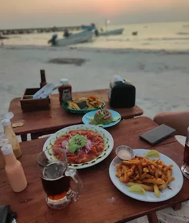 Os hóspedes de Casa Holboxenos Vila podem almoçar ou jantar na pizzaria El Crustaceo kascarudo que presenta culinária Mexicaanse e está localizado 50 metros da propriedade ou jantar no Le Jardin Panaderia que serve culinária Franse a 350 metros de distância. - ❓